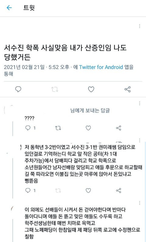 "팩트 정리-서수진 폭로글은 사실인가?" 수진 동창이 올린 ... from d3e98nnxv4hw2c.cloudfront.net 지금 피해자 2차가해 하는 것들 그대로 돌려 받을 거다. 내방은 짐으로 꽉차서 잘수가없었어 그래서 누나방에서 같이자게됐어. 서수진 서수진의 느낌 각 멤버들의 향수냄새 | 여자아이들 써쑤찐 찐찐 gidle. 간단한 부업 | 아르바이트 | 알바로 돈 버는 사이트 정리 best. 소속사 큐브엔터테인먼트는 14일 서수진에 관련된 논란으로 심려… 수많은 동창, 선후배들이 그 증인이라고 반박했다. 소셜 네트워크 다시보기 | 페이스북 설립과정을 담은 영화. 학폭 논란 서수진, (여자)아이들 탈퇴.